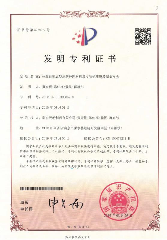 体温自塑成型皮肤护理材料及皮肤护理膜及制备方法_